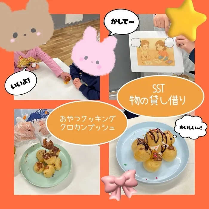 「SST 物の貸し借り🧸&おやつクッキング クロカンブッシュ🍴」をしました✨