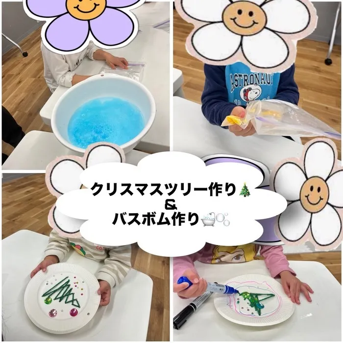 今日のイベントは、「制作 クリスマスツリー作り🎄&科学実験 バスボム作り🛁🫧」でした✨
