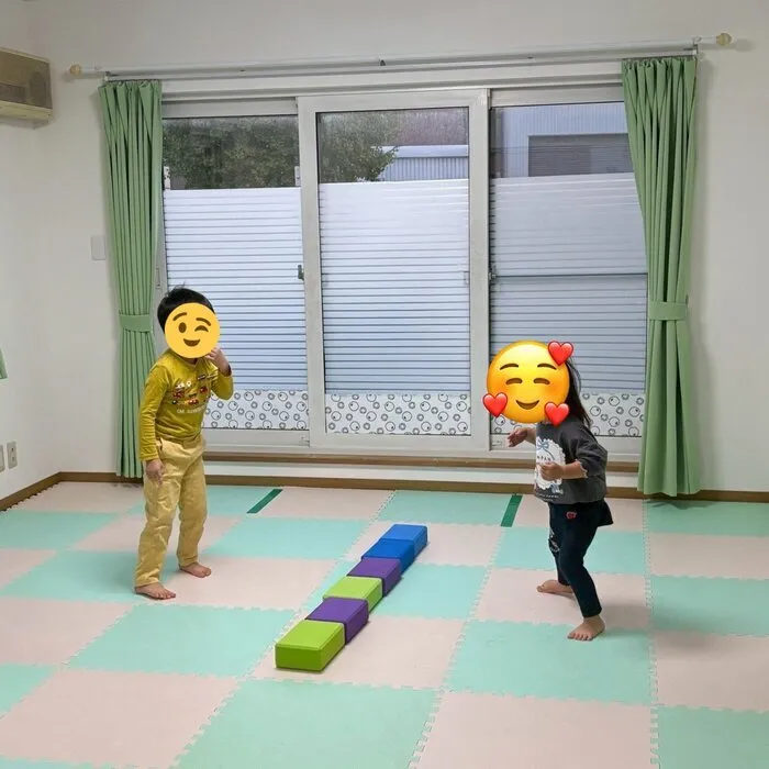 ブロックをまたがないように相手の動きをよーく見て判断力、瞬発力、判断力が鍛えられるプログラムです💪