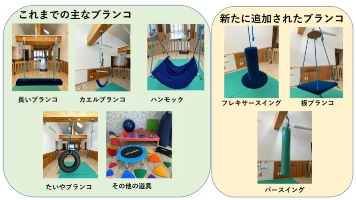 これらの新たなブランコを用いて、より良い運動を行っていきます。 リハビリステップ