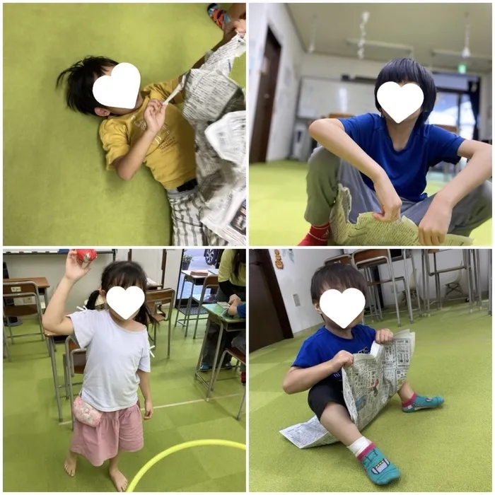 新聞紙が破れても、最後まで諦めず、お友達と競争したりスタッフを追いかけたりと笑顔で活動に参加していました🗞️