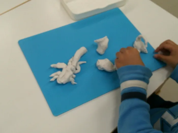 白いねんどで自分の好きなものを作り、完成したらみんなの前で発表をしてもらいます。