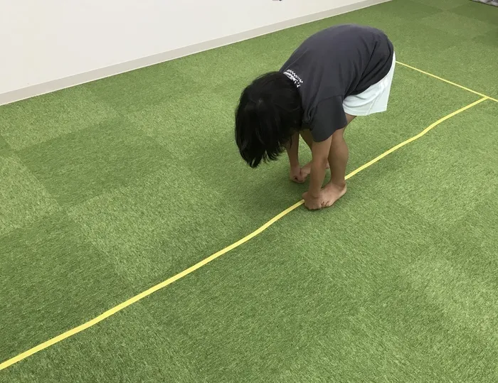 つま先を上げて手で持ち、体幹を使いながらかかとで歩いていきます😊