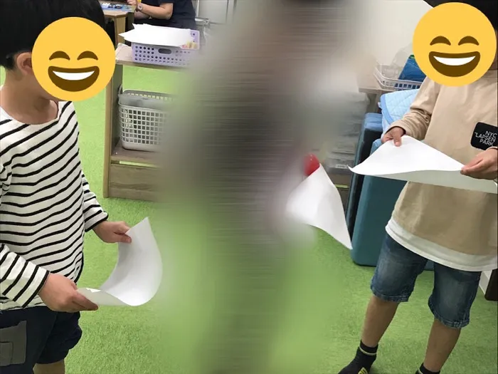 ボールを落とさないよう紙の端を折って工夫する子もいました👀