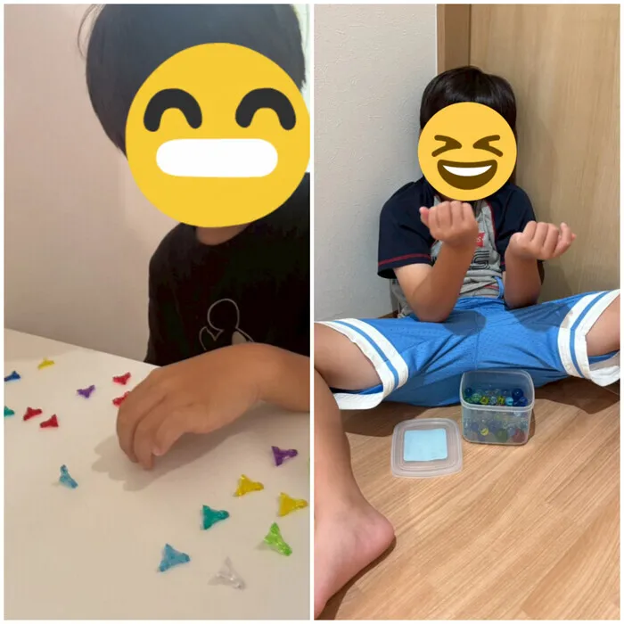 最近、子どもたちはビー玉や透明のラキューがお気に入りのようです!