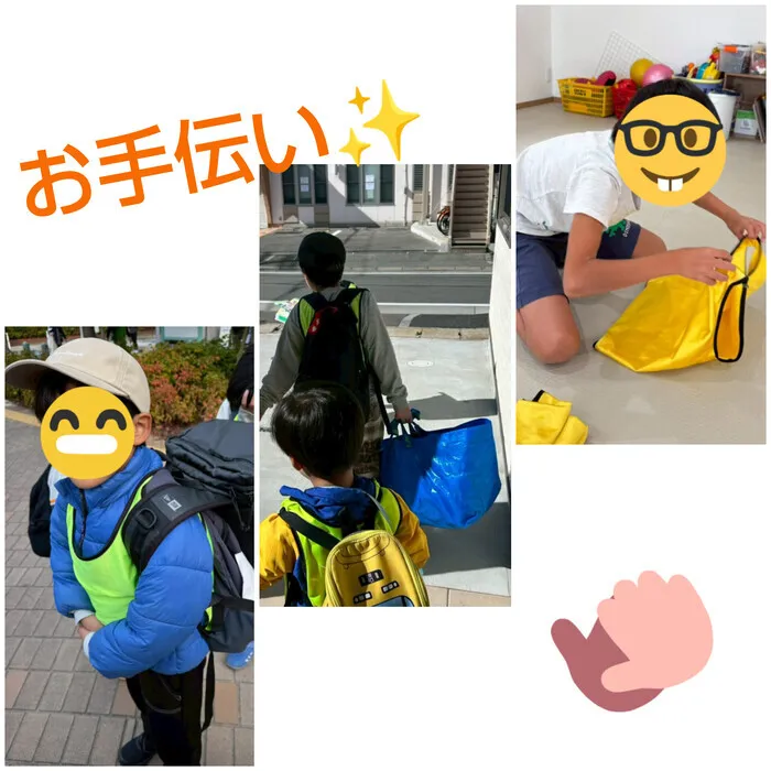 お出かけの時に着るビブスを畳んでくれたり、荷物を持ってくれたり🎒