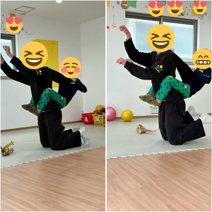 職員に恐竜になってと言って上に乗って楽しんでいました。