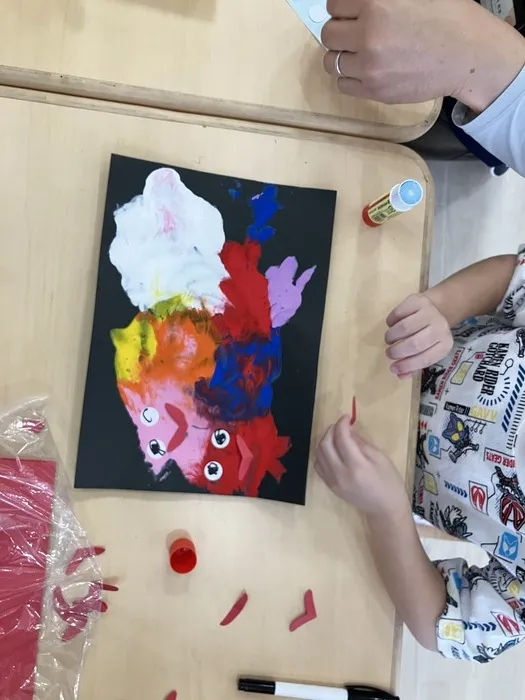 未就園児さん以外は、黒目を描き、口をはさみで切る、貼るなどの工程もできています。