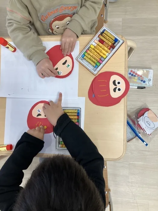 子どもたちに新年の準備としてだるまさんを作ってもらいました。