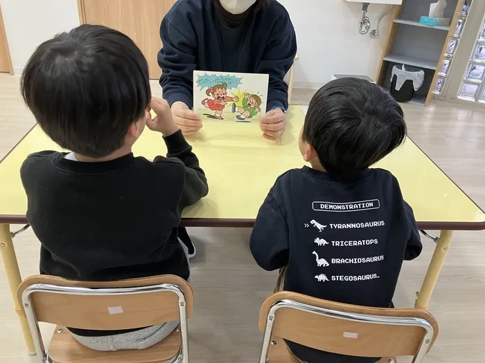 ペアの良いところは、お友だちの意見を聞いて自分の意見と比べたり、同じで共感し合ったりと個別で行うのと、また違う療育ができるところですね。