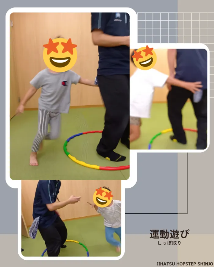 お子様たちはフープに入らないお約束で、その周りを回って尻尾を取りに行きます💪✨
