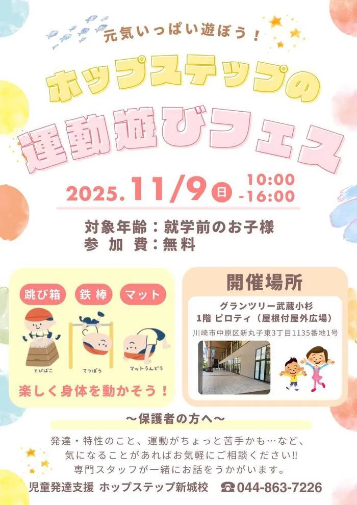 同会場にて、お子様の発達の困りごとなど、保護者向けの個別相談スペースもご用意させていただきます。ご予約は不要ですので、お友達とご一緒に、是非、遊びにお越しください!