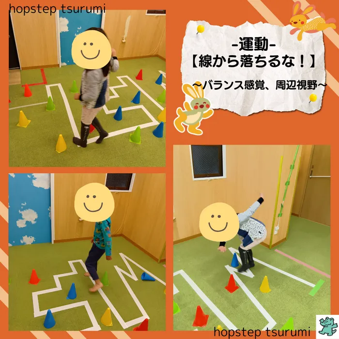 今回は【バランス感覚】【周辺視野】の向上を目的とした【線から落ちるなゲーム】のご様子について紹介します!