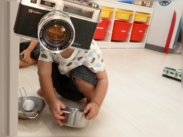 来所していつもおままごとをするお友だちが、一生懸命先生にご飯を作ってくれています✨
