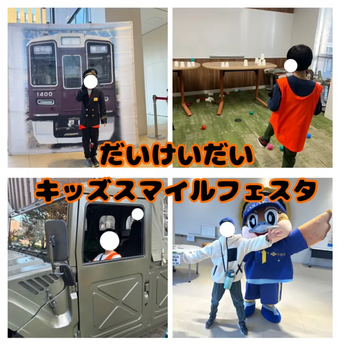 ダンボールで作られた巨大迷路に入ったり、自衛隊の車に乗る体験をしたり、阪急電車の制服を着てフォトスポットで写真を撮るなど、普段できない体験ができました!!📷