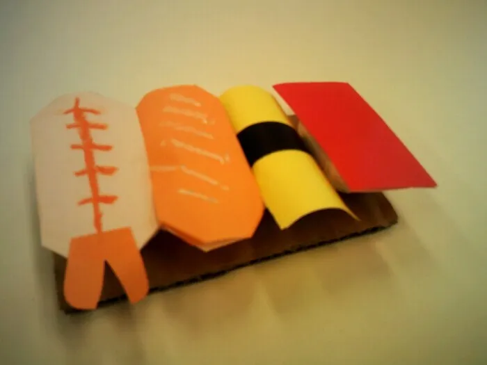 また、細長い黒の折り紙を用意することで、たまごのお寿司も再現できます!