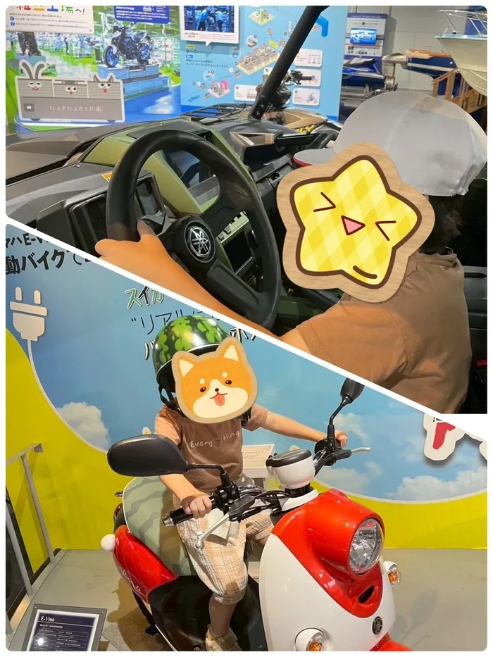 ヤマハで作られた車やバイク、船にエンジンと様々な展示されているものに目を輝かせる子どもたち。