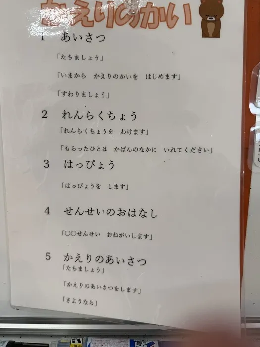 ぽかぽか磐田では毎日帰りの会を行っています。
