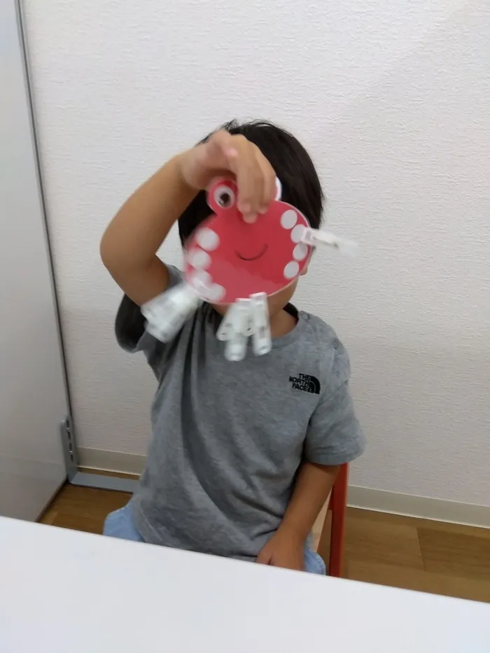 洗濯ばさみを使った療育で、動物や生き物のイラストに目印をつけてそこに洗濯ばさみをつけてもらう内容です。