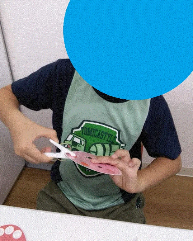 「台紙の指定された場所に洗濯ばさみをつける課題です」