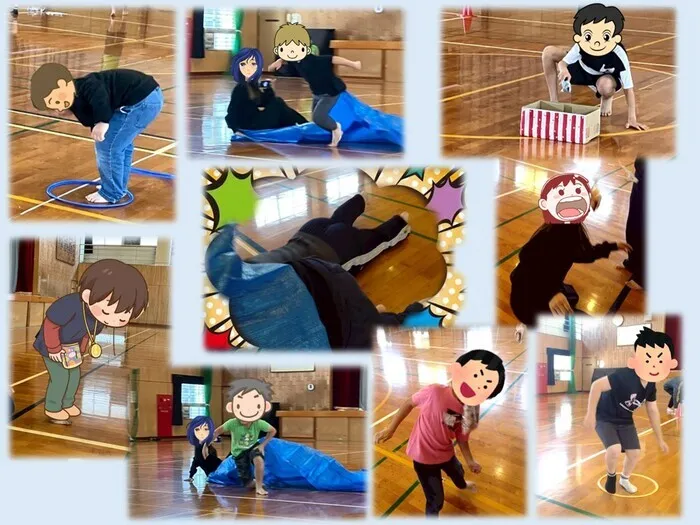 「忍者リレー🥷」では、2つのフープを前と後ろに置いて渡っていき、手裏剣投げに挑戦し、帰りは新聞紙から足がはみ出さないように慎重に歩いたりと、まるで忍者修行のようなコースに子どもたちは大興奮🤪応援にも力が入り、体育館に元気な声が響きました📣
