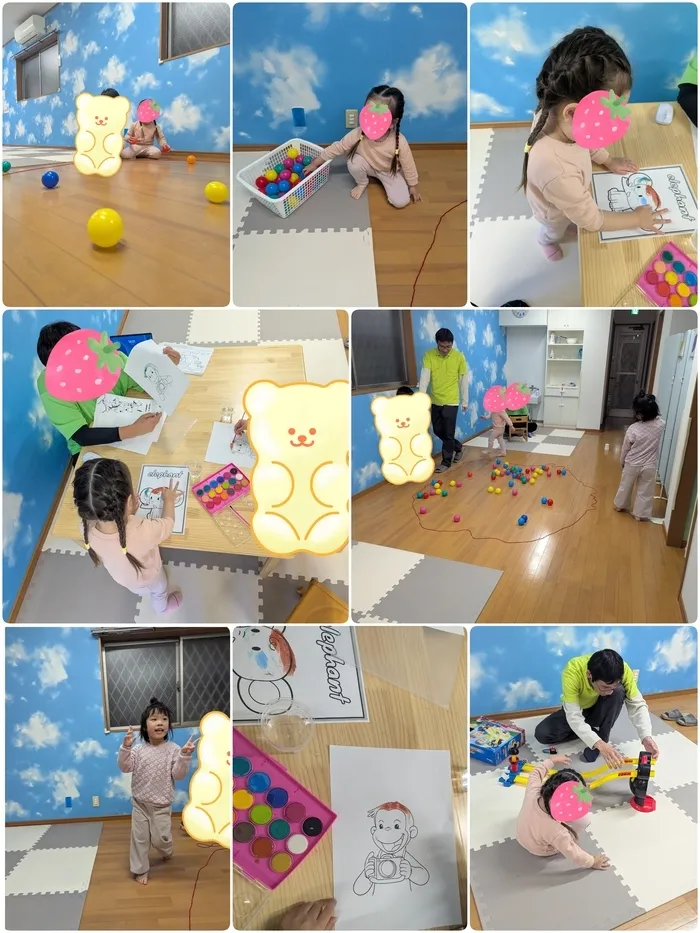 今週の小集団療育では、塗り絵とカップ取りゲームをしました🌞