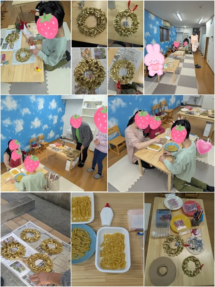 乾いた後にビーズを飾り付け、素敵なクリスマスリースが完成しました🌞