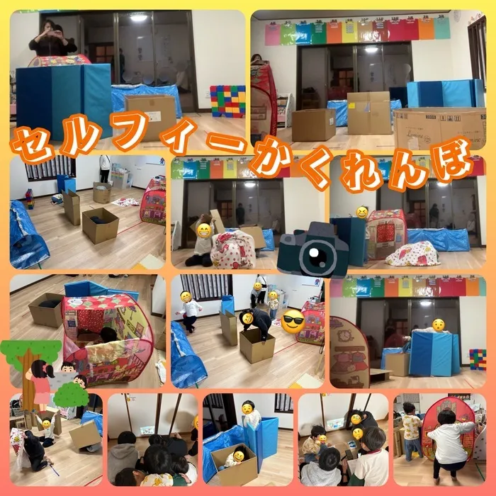 かくれんぼと言っても、室内は隠れる場所もほとんどなく、スペースも限られているため、行ったのは『セルフィーかくれんぼ』😶🌫️