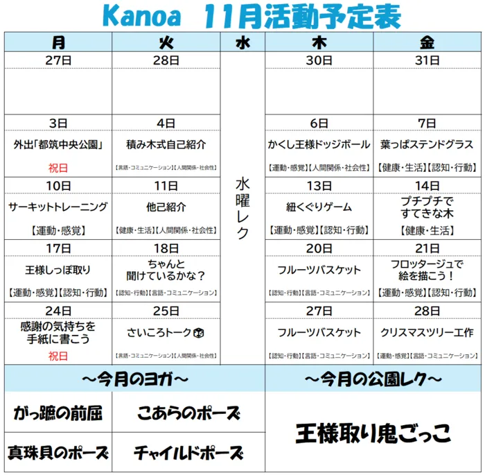 11月の活動予定をご案内いたします。