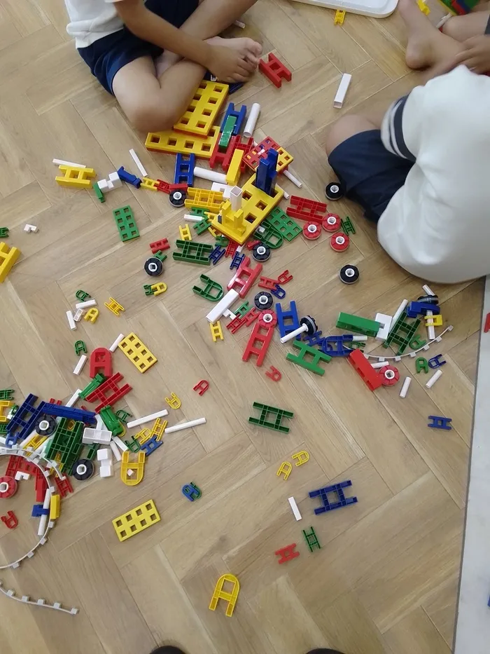 こどもたちが自由にブロック遊び。