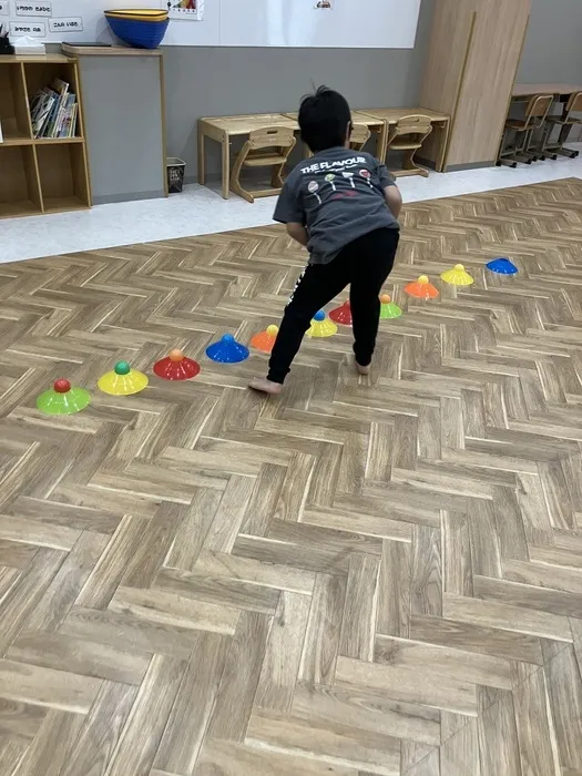 きちんと目で色を見てボールとコーンの色を合わせていきます!