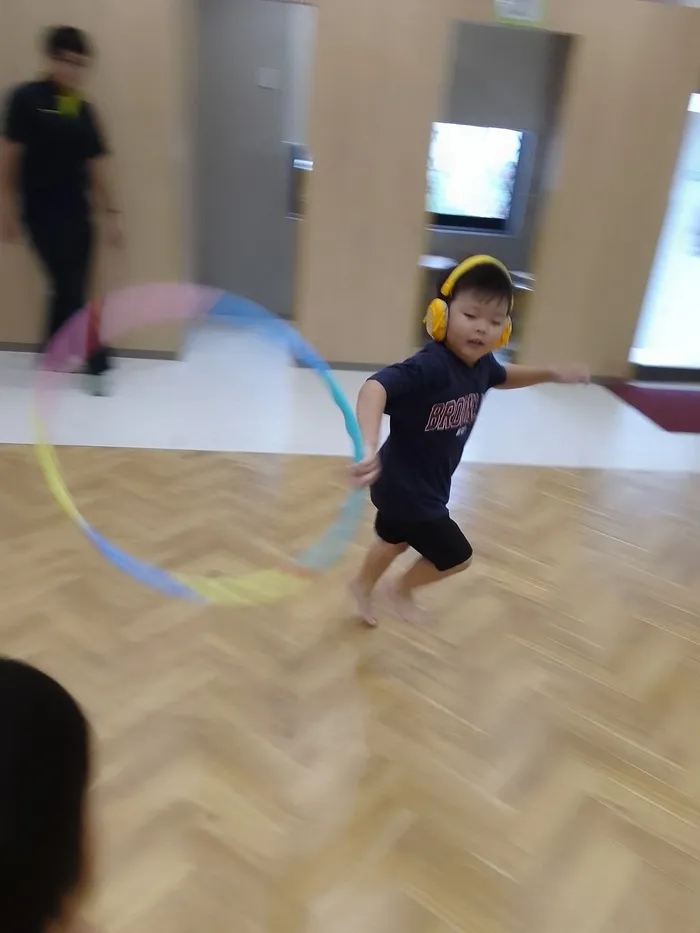 ぐるぐる回転してくるフラフープをジャンプをして遊びました😁