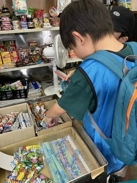自分でお菓子を選んで、おじさんにお支払い👛しました。