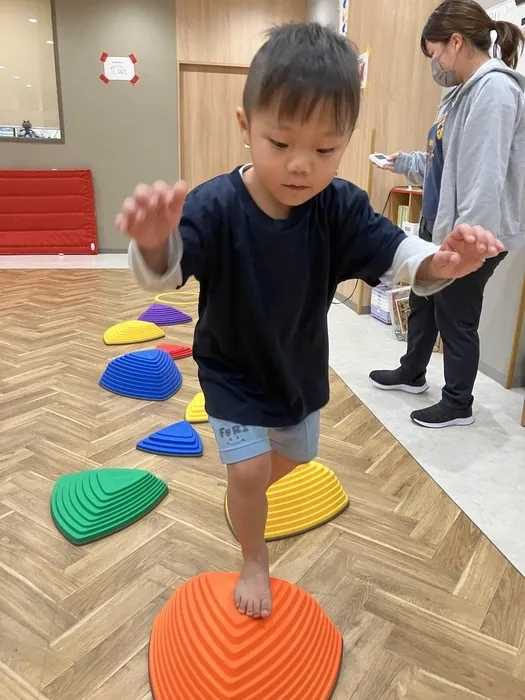 トランポリンや手押し車などで、バランス力を鍛えながらたくさん体を動かしました。