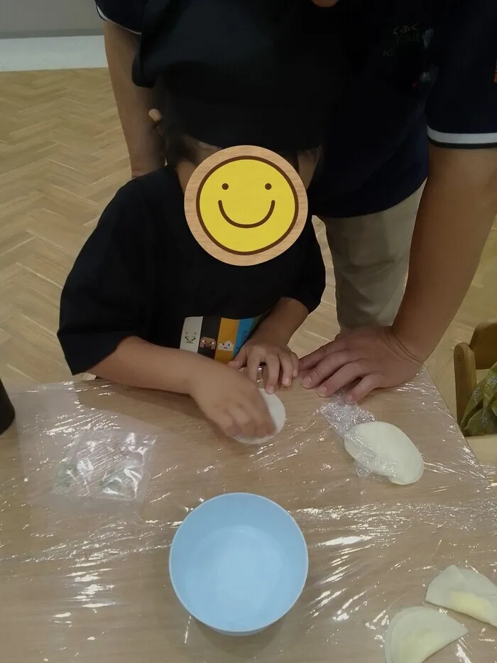 今日はみんなで餃子の皮を使ってパイを作りました~🥧✨