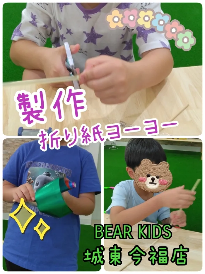 折り紙・割り箸・ストローを使って「折り紙ヨーヨー」作りに挑戦しました。
