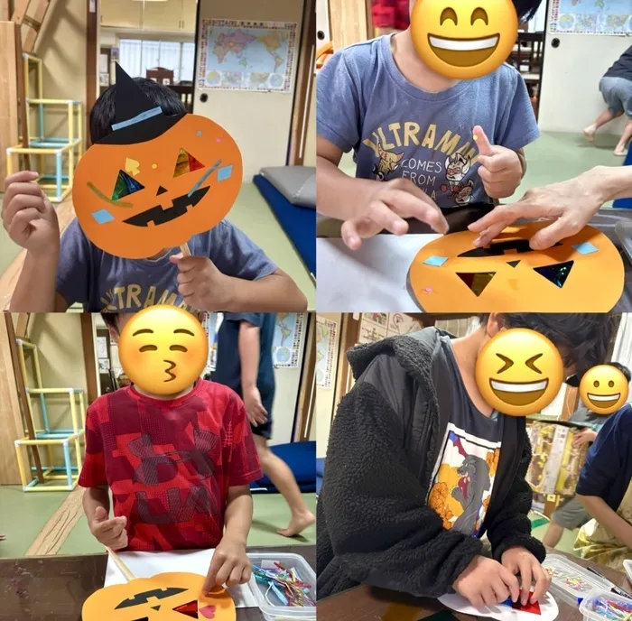 先生が丁寧に教えてくれる作り方を、子ども達もしっかり聞き、丁寧に作りました🎃