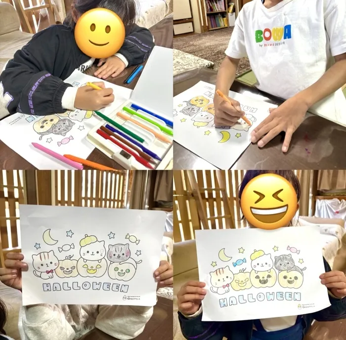 もうすぐハロウィンということで、みんなでそれぞれ違う絵の塗り絵をしました✨