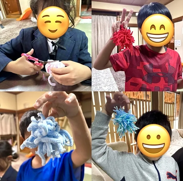 今日の活動は、“毛糸まっくろくろすけ”作りです🧶