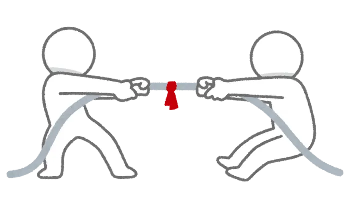 ルールは簡単!お互いにタオルを両端から持ってひっぱり合います。
