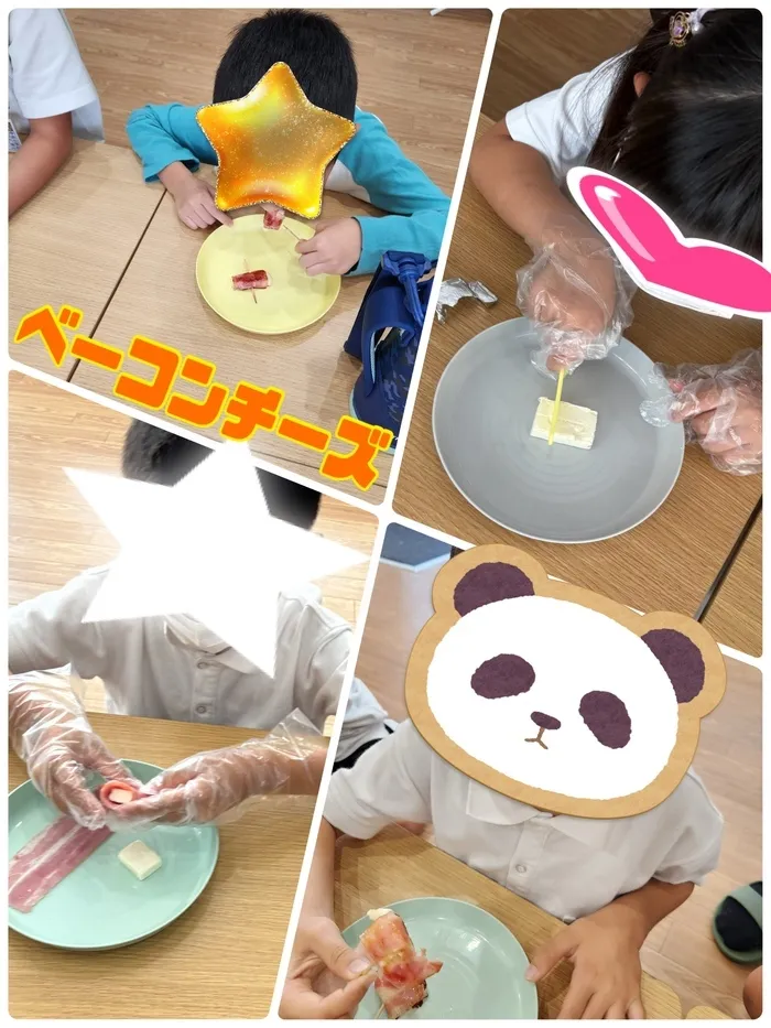 10月最初のおやつクッキングでは、ベーコンチーズを作りました。
