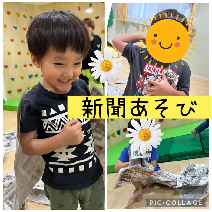 新聞紙を、びりびりと破って、丸めてボールにして投げ合いっこ!