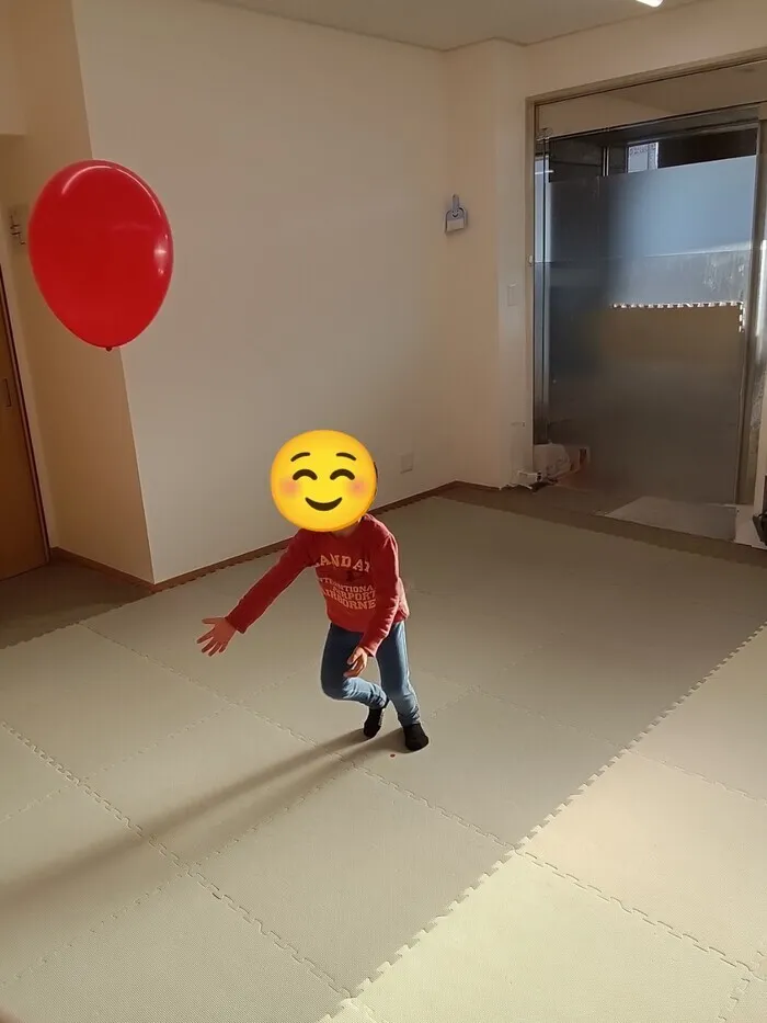 力加減や距離感を考えなら風船を扱います。