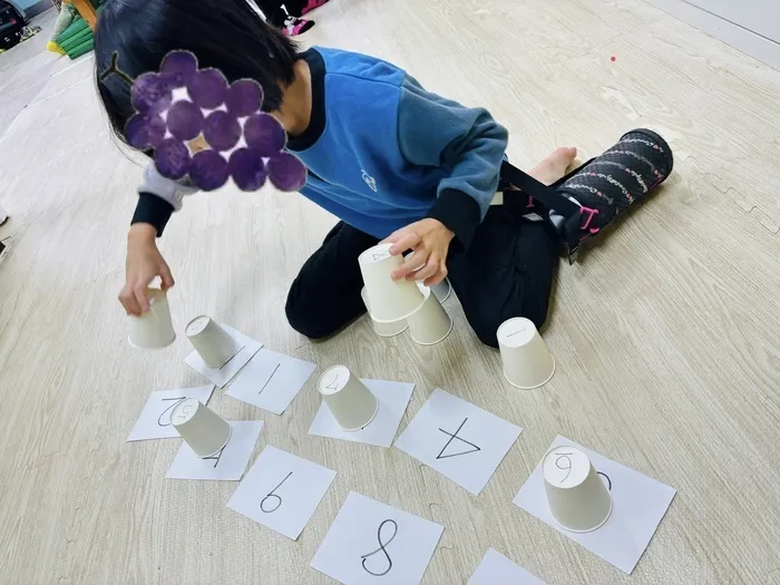 紙コップナンバリング対決では、沢山ある数字を見極め、ターゲットとなる数字同士をマッチングさせる、ビジョントレーニングと全般性注意能力の内、選択性注意能力(沢山の中からターゲットを見つけ出す能力)が必要となるゲームです。