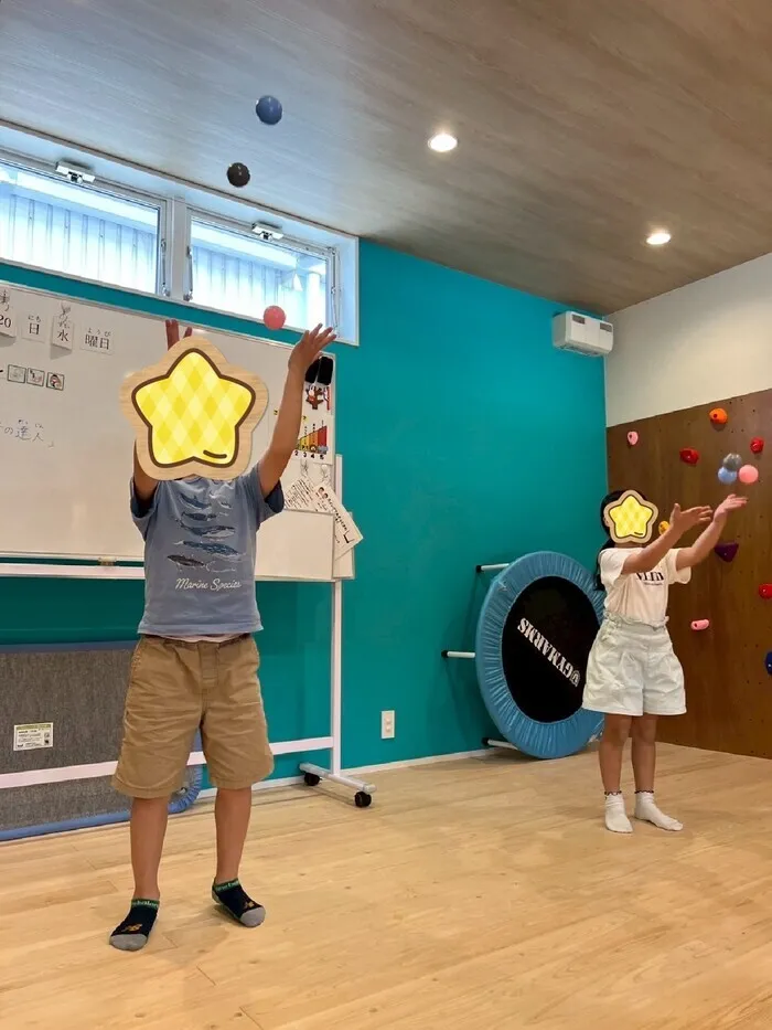 ボールを数個同時に投げ、スタッフの指定した色のボールのみをキャッチします✨