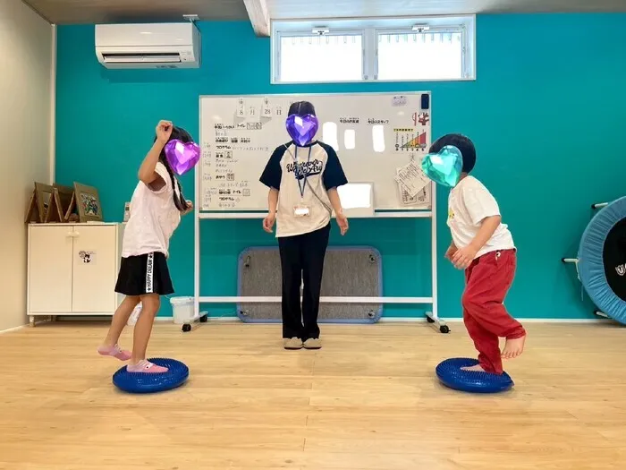 バランスディスクの上に片足で立ち、バランスを保ちます!