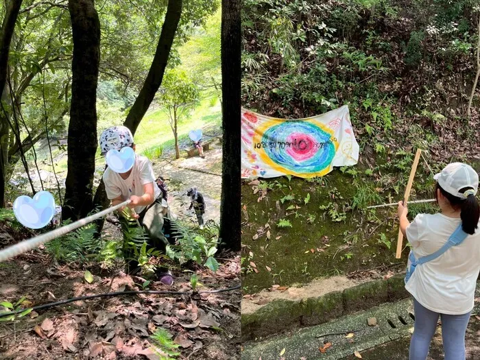 プレーパークでは普段できないような崖のぼりをしたり、竹で弓矢を作って遊びました😊