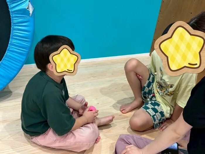 お友達とペアになり、ボールを持っている人がお話しができるというルールでお題に合わせた会話をします🌈