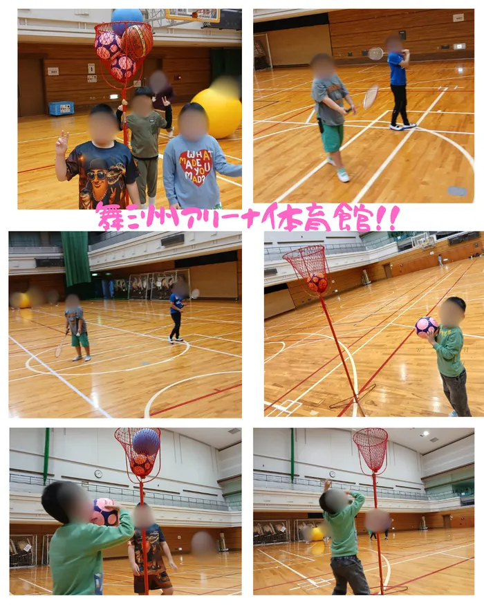 アリーナでは、大玉・大縄跳び・バスケット・バトミントン・サッカー・ドッチボールまどたくさん楽しみました🤗