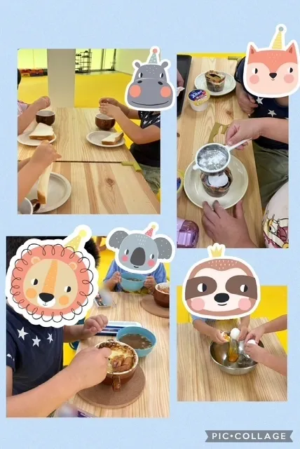 混ぜたり飾ったり、とても楽しそうに作っていました♪